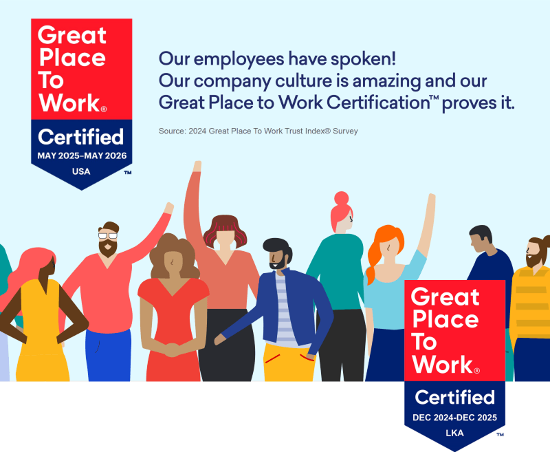 We are proud to be recognized as a Great Place to Work® in the U.S. and Sri Lanka. These certifications reflect our shared culture of collaboration, inclusivity, and growth that spans borders. Together, we’re shaping a global culture that puts people first.