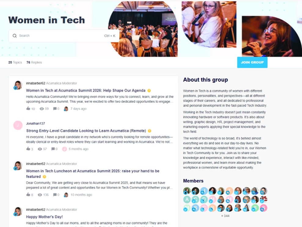 Acumatica Community Women In Tech Forum, a dedicated space for women to share their knowledge and experience, learn from and support one another, and transform the technology field into a cornerstone of equitable opportunity.